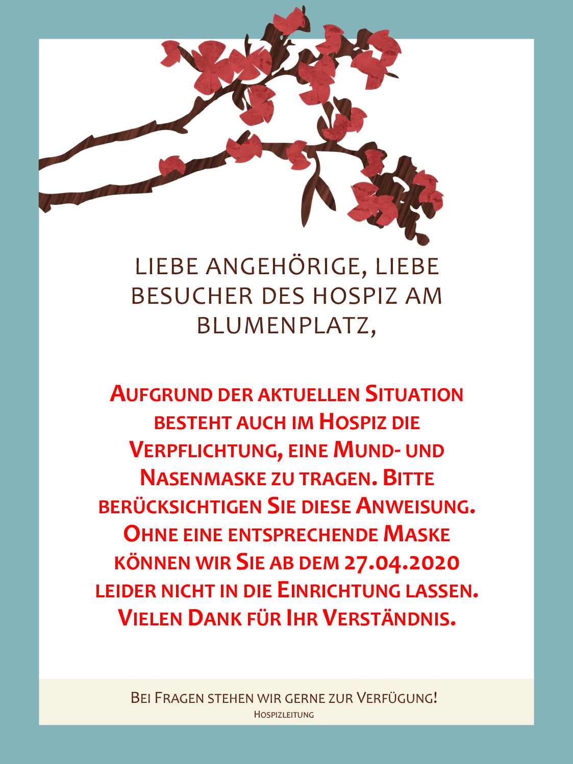 Aktueller Aushang zu Mund- und Nasenmaske