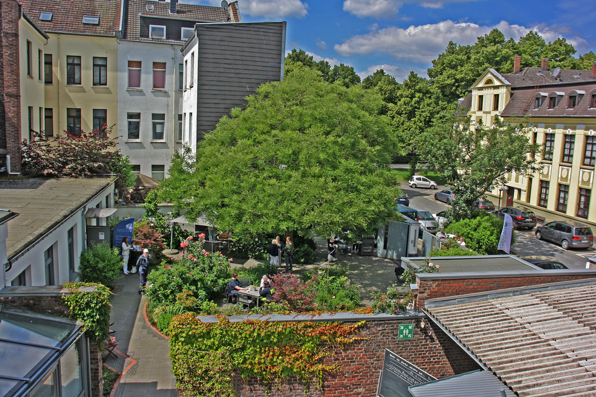 Die Besucher sollen erfahren, was Hospiz-Arbeit bedeutet und die Scheu vor dem Thema „Tod und Sterben“ nehmen: Im Mai lädt die Hospiz Stiftung Krefeld im Rahmen der Aktion „Offene Gartenpforte“ zu einem Besuch in den Hospiz Garten ein. Der Garten ist eine Oase mitten in der manchmal hektischen Innenstadt Krefelds: Mittelpunkt ist ein kreisrundes Pflanzbeet. Westlich schließt sich der „Garten der Erinnerung“ an, mit einem quadratischen Platz, Wasserspiel und Sockeln aus Cortenstahl. In einigen werden Gedenksteine an die Hospiz-Gäste aufbewahrt. Im Garten blühen Rosen, Lavendel, Zaubernuss, Schnee-Heide, Magnolien, Azaleen, Schwertlilien, Phlox, Rittersporn, ein Schnurbaum und eine Hainbuchenhecke. Zwei Apfelbäume stiftete der Krefelder Künstler Caco.