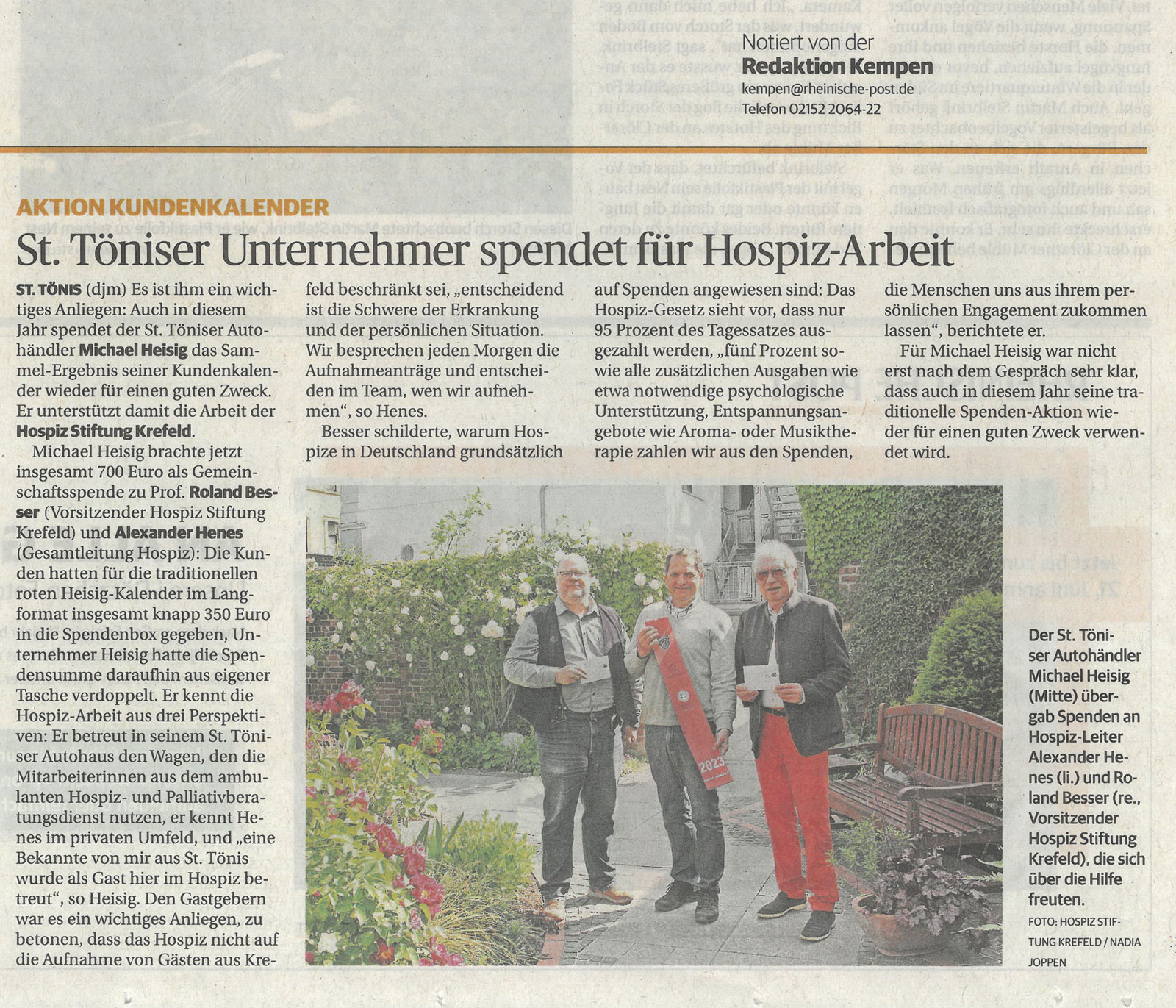 Autohaus Heisig spendet für die Hospiz Stiftung Krefeld