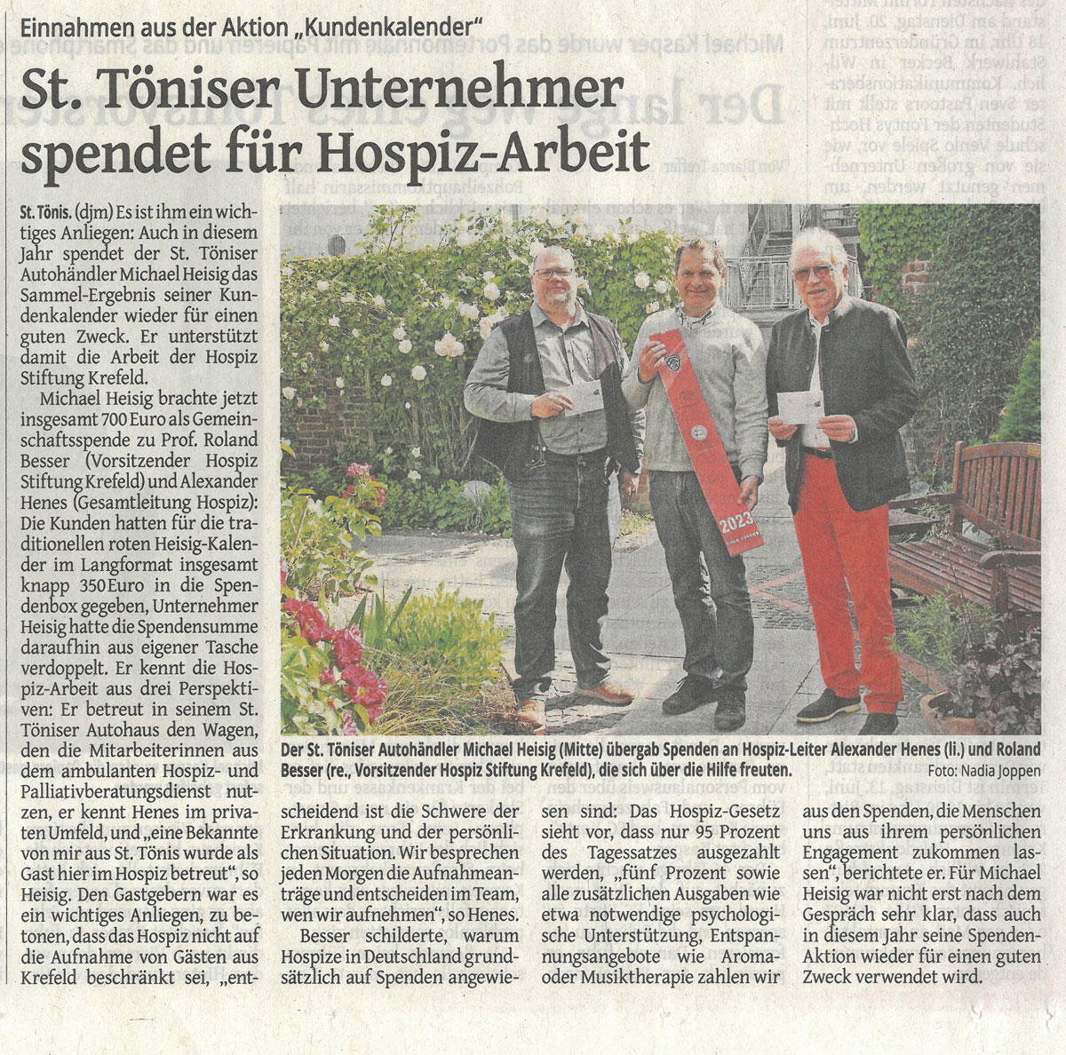 Autohaus Heisig spendet für die Hospiz Stiftung Krefeld