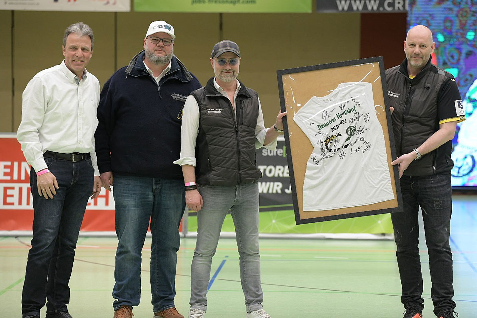 Frank Tichelkamp und André Schicks hatten beim HSG-Derby (25. Februar) gegen den TV Aldekerk in der Yayla-Arena von beiden Teams je ein Derby T-Shirt signieren lassen. Beide werden zugunsten der Hospiz Stiftung Krefeld versteigert. Das Zwischenergebnis: Das Original Derby-Shirt des Drittligisten HSG hat Lutz Kottsieper (Lutz Kottsieper GmbH, Mein Bad. Meine Wärme) für unglaubliche € 1500,- ersteigert. In Aldekerk läuft die Versteigerung noch.
