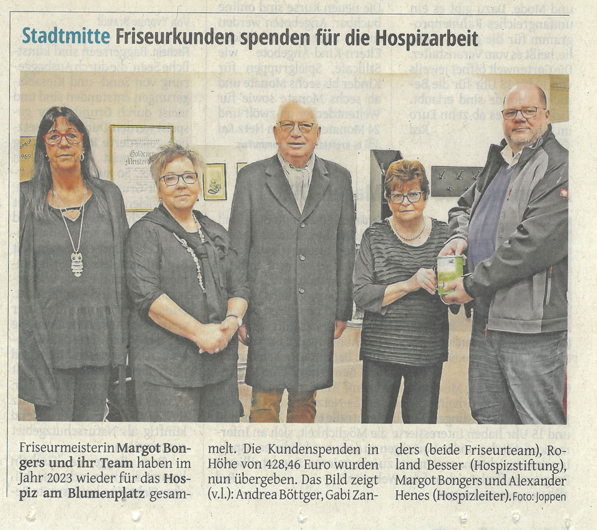 Friseurkunden spenden für Hospiz