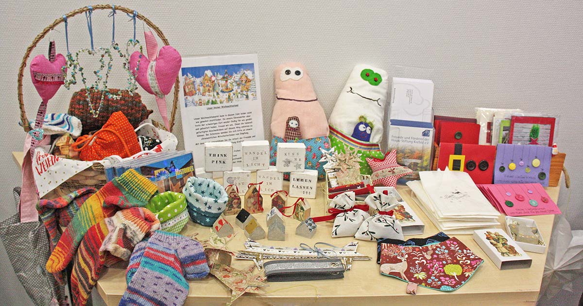 Unser Weihnachtsmarkt kann in diesem Jahr leider nicht wie gewohnt stattfinden. Da unsere Ehrenamtler aber trotz der schwierigen Zeit wieder fleißig für uns genäht und gebastelt haben, freuen wir uns, Ihnen die liebevoll gefertigten Geschenkideen auf diesem Weg anbieten zu können. Bei Interesse wenden Sie sich bitte an unsere ehrenamtlichen MitarbeiterInnen vom Empfang.
