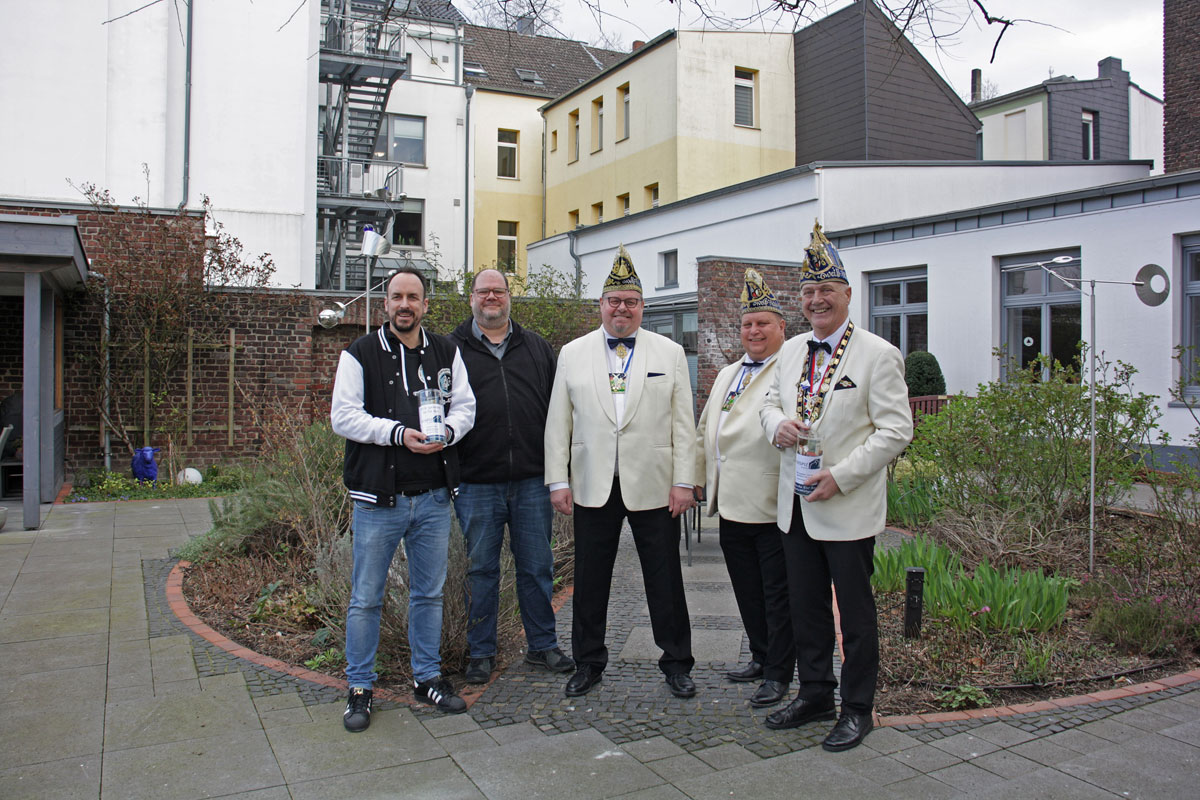 M. Prangs aus der Fan-Vereinigung 501is Legion „Vader’s Fist“ hatte angeregt, bei der Karnevalssitzung der KG Weiß & Blau Kamperlings für die Hospiz Stiftung Krefeld zu sammeln. Er, Andreas Becker, Heiko Päplow und Günter Vida brachten die Spende zu Alexander Henes.